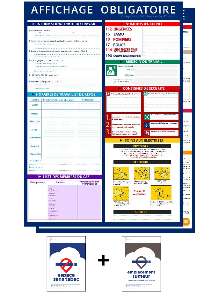 23 Informations Essentielles : De l'interdiction de fumer à la lutte contre les discriminations, en passant par les horaires de travail et les coordonnées des services compétents en matière de harcèlement, ce kit couvre toutes les obligations d'affichage.